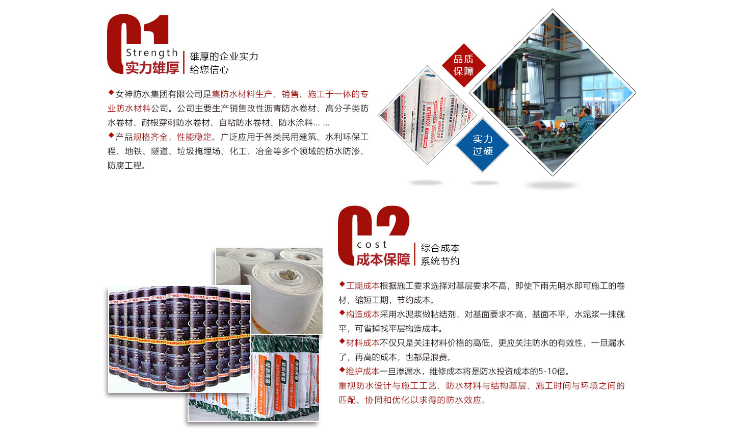安徽女神建材科技集團(tuán)有限公司是集防水材料研發(fā)、生產(chǎn)、銷售、施工為一體的綜合性防水材料集團(tuán)公司。我公司旗下有多條大型一次成型生產(chǎn)線:SBS改性瀝青防水卷材,DTM聚酯復(fù)合高分子防水卷材,非瀝青基高分子防水卷材,PVC,TPO高分子防水卷材等生產(chǎn)線。我公司秉承“創(chuàng)新發(fā)展、實(shí)惠用戶”為宗旨,確保生產(chǎn)材料基礎(chǔ)上推出“共享生產(chǎn)廠家”,為開發(fā)商、建筑商節(jié)約成本為理念,新理念受到用戶企業(yè)集采時(shí)一致好評(píng)和認(rèn)可。在互聯(lián)網(wǎng)時(shí)代,我公司將以互聯(lián)網(wǎng)“共享”為發(fā)展理念,為開發(fā)商、建筑商、防水企業(yè)提供的產(chǎn)品,真正讓用戶企業(yè)達(dá)到巨大...